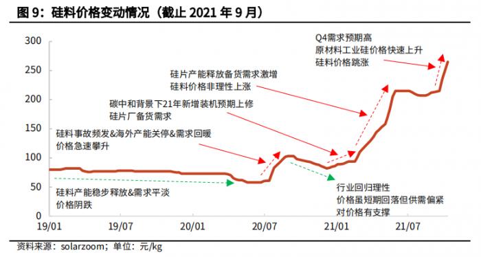 光伏:2022年上半年硅料价格降低将推动产业链价格下降;若2022年底前硅料价格下降到80元/kg,光伏项目总体造价仅因此因素就将下降13%,且技术进步和产业竞争仍在持续中,共同推动持续降本。