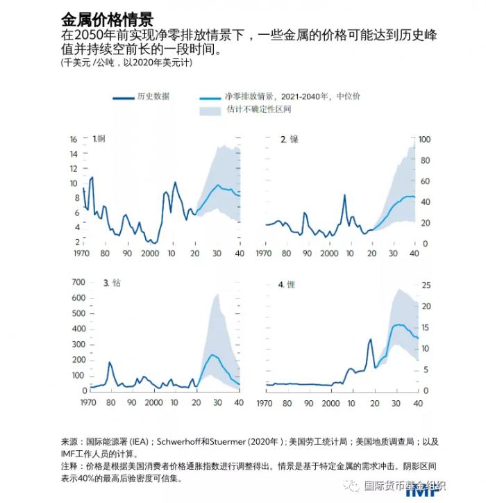 “我们重点关注了能源转型所需诸多金属中的四大重要金属,它们是已经在交易所交易了几十年的主要金属铜和镍,以及居于次位但愈发重要的锂和钴——后两种金属仅在最近才开始在交易所交易,但它们对能源转型十分重要,正越来越受到青睐。”IMF指出。