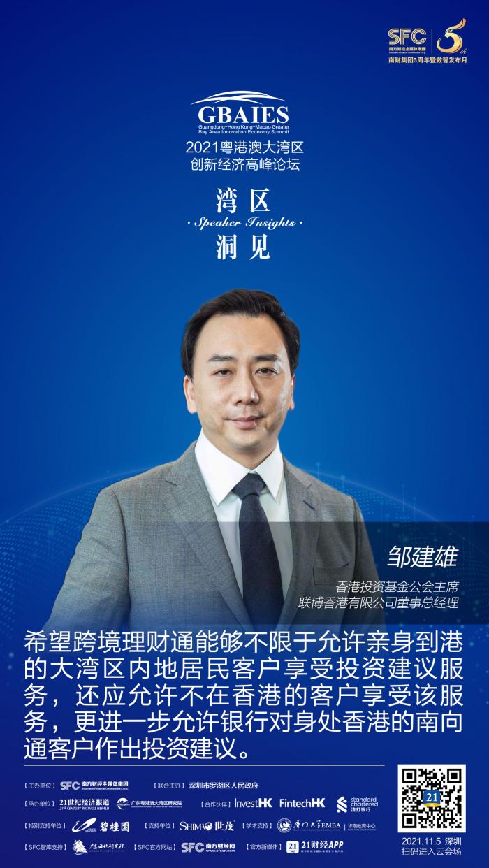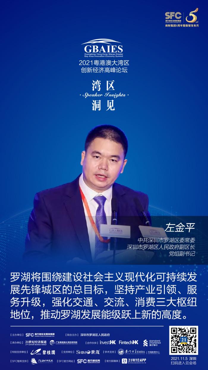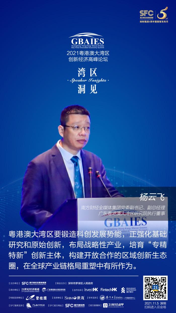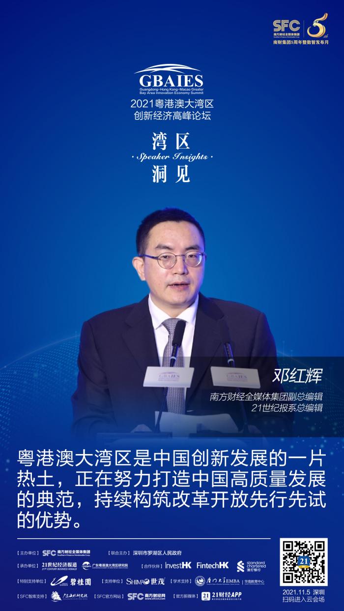 2021粤港澳大湾区创新经济高峰论坛11月5日在深圳君悦酒店举行,主题为——新使命 大未来:互联互通提速下的大湾区创新进阶。论坛由南方财经全媒体集团主办,深圳市罗湖区政府联合主办,21世纪经济报道、广东粤港澳大湾区研究院承办。