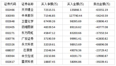 从监测到的数据上看,本周异动股数为161只,主力资金本周买入金额为327亿元,卖出金额为277亿元,合计买入净额为49.6亿元。从数据来看,异动股数和资金买卖规模本周维持稳定,市场表现强势,指数快速修复,资金净流入加大。本周买入净额超过亿元的公司高达22家,分别是天齐锂业、中来股份、卫星化学、四维图新、东方雨虹、广发证券、永太科技、芯源微、中文在线、露笑科技、拓新药业、中青宝、易事特、永兴材料、宝通科技、中国宝安、东方电热、宝色股份、游族网络、天舟文化、隆平高科、许继电气,本周锂电池概念反复走强,华安证券认为国内锂资源供应紧张局面不改,供需持续偏紧支撑锂价高位运行。进入第四季度,锂电产业链依然是市场中最耀眼的板块。有私募人士直言,锂电池有成长确定性,还有万亿起步的市场前景,全市场无出其右。“短期、长期逻辑很清楚,现在产业链公司巨额投资,把中期变化的缺口也补上了。”