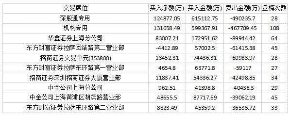 从表三的数据可以看出,游资总体活跃度较高,本周登榜次数超过10次的游资有15家,西藏东财拉萨系依然是最为活跃的游资,从买入净额来看,游资交投量大,买入净额超过两亿元的营业部席位有13家,分别是游资华鑫证券上海分公司、游资中金公司上海黄浦区湖滨路营业部、游资长江证券上海斜土路营业部、游资南京证券南京大钟亭营业部、游资兴业证券上海世博馆路营业部、游资华鑫证券湖州劳动路浙北金融中心营业部、游资光大证券佛山绿景路营业部、游资东莞证券北京分公司、游资兴业证券上海金陵东路营业部、游资财通证券杭州上塘路营业部等。