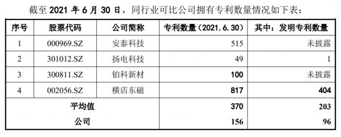 科创属性方面,云路股份招股书(申报稿)披露,公司拥有156项专利,其中发明专利96项、实用新型专利60项。公司专利数量低于同行业可比公司拥有专利数量平均值。