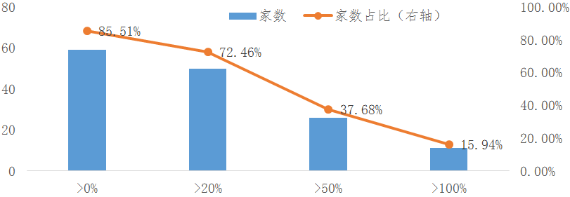 图2:新三板精选层69家企业2021年以来收益率分布情况