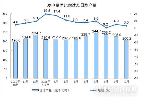 图2:发电量同比增速及日均产量(2020.10-2021.10)