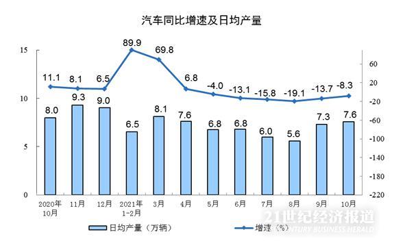 图3:汽车同比增速及日均产量(2020.10-0221.10)