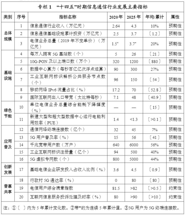 《“十四五”信息通信行业发展规划》发布:力争5G城市和乡镇全面覆盖,信通业收入达4.3万亿
