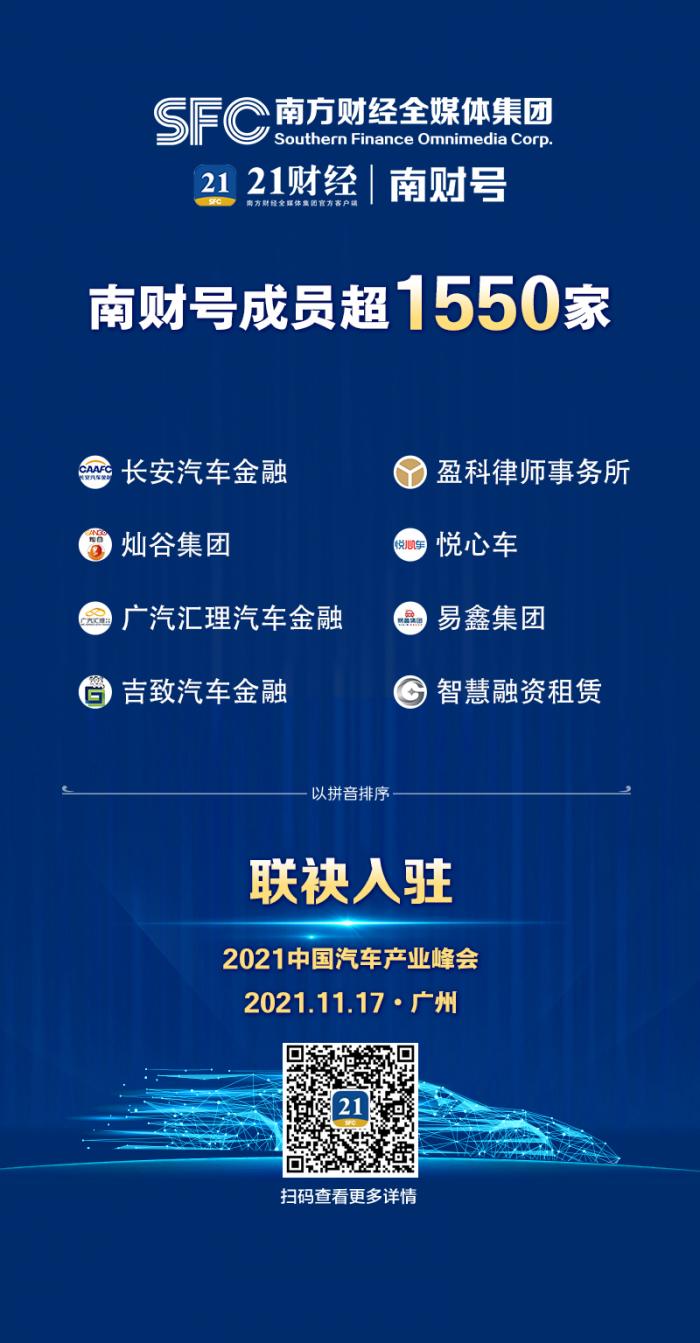 在11月17日举行的“2021中国汽车产业峰会”现场,一批汽车行业新成员集体入驻“南财号”平台,与南方财经全媒体集团共建中国一流的财经内容聚合平台。截至目前,“南财号”平台入驻成员已超过1550家。
