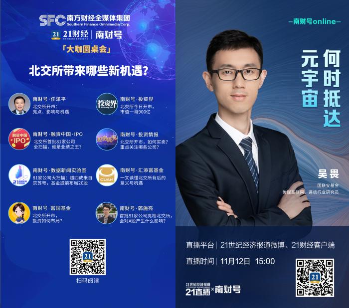 围绕大众关注的财经热点话题,南财号重点打造了“大咖圆桌会”和“南财号online”等系列新媒体栏目,邀请入驻创作者发表专业见解和深度分析。其中“大咖圆桌会”已举办超过30期,集纳南财号入驻创作者的优质文章300余篇,全网阅读量超2300万;今年8月上线的“南财号online”已举办12期,邀请南财号入驻嘉宾连线直播,纵论财经大势。南财号平台接下来还将继续做好赋能工作,让入驻创作者的专业内容得到更广泛、更权威的传播,支持入驻创作者提升IP影响力。