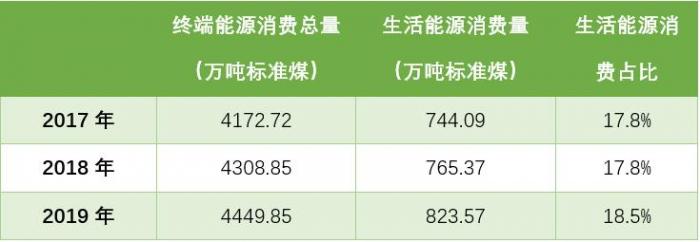 2017年到2019年生活能源消费量