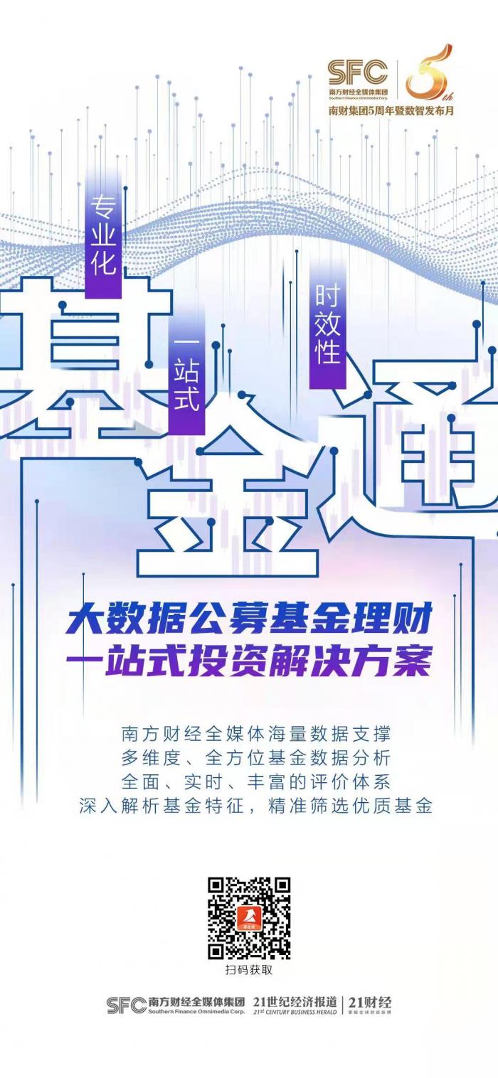“南财基金通”是继“理财通”“城市通”“资讯通”后南方财经大湾区数据中心打造的又一重磅数据产品。南财集团致力于通过“南财基金通”进一步提高金融行业的信息透明度,增加基金投资的社会关注度,帮助中国投资者培育成熟的理财观念,为中国资本市场改革创新和高质量发展的深入推进以及财富管理大时代的来临添砖加瓦。