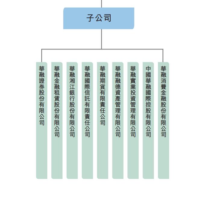 据中国华融2020年年报披露,其旗下子公司包括华融证券、华融金融租赁、华融湘江银行、华融国际信托、华融消费金融以及华融融德资产管理公司、华融实业投资管理公司、华融国际控股公司。