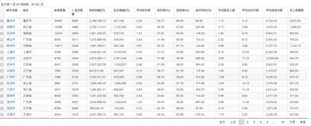 上图是一组全国典型城市的法拍房成交数据,可以看出,近12个月以来,重庆以34984的拍卖数量,8994的成交数量稳居第一。