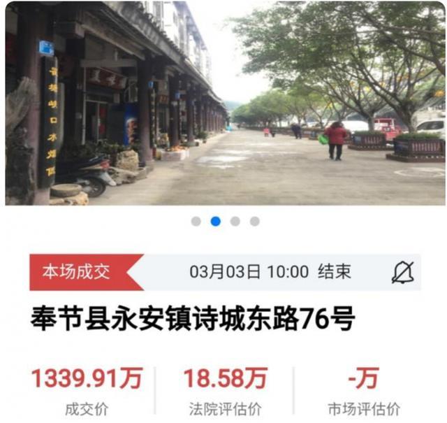 奇葩的是,在2019年,奉节县有一套评估18.58万的房产,被1339.91万的天价拍出。