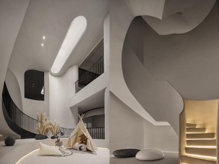 如北京珠江•天樾书院在室内设计上采用了古根海姆博物馆的螺旋造型,“米拉之家”的曲线艺术,目之所及的米白色设计,高度体现了东方美学的最高境界——留白,加之链接地下两层的自行车旋转坡道,彰显了艺术之美的同时,打破了传统别墅的设计范式。