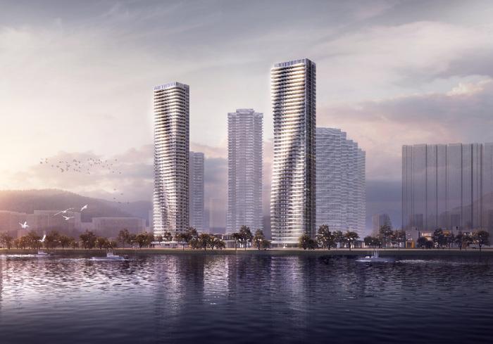 广州•珠江海御邀请国际豪宅设计专家SHING&PARTNERS汉森伯盛国际设计集团倾力打造,规划约100-150米高层地标住宅,为符合珠江入海口头排海景资源,外立面呈海浪型,构筑湾区封面。独创点式+U型曲线布局,超百米楼间距,最大化景观面。