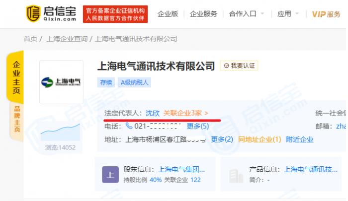 启信宝数据显示,2018年6月19日,沈欣出任上电通讯董事;2021年1月19日,沈欣接替吕亚臣成为上电通讯的法定代表人。