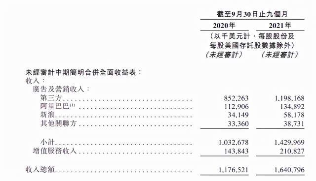 作为中国领先的社交媒体平台,微博近年来营收持续增长。2016年至2020年微博的收入按26.7%的复合年增长率录得增长,经营利润率从2016年的21.5%提高至2020年的30.0%。根据最新披露数据,截至2021年9月30日止九个月,未经审计的微博的收入约为16亿美元。