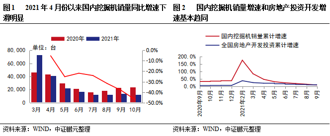 中证鹏元认为,考虑到2021年新增专项债券额度较去年有所提升,基建或未对挖掘机数据形成压制。房地产方面,目前面临的去化周期上行、百城土地流拍率的提升、开工周期延伸等,房地产数据对挖掘机拖累明显;近日,房地产政策松绑多以纠偏为主,但公司层面风险仍需释放,10月份挖掘机销量数据大幅下降,已经显现出房地产行业第四季度“开局不利”,目前房地产投资企稳仍有待观察,第四季度房地产行业走势仍不乐观。