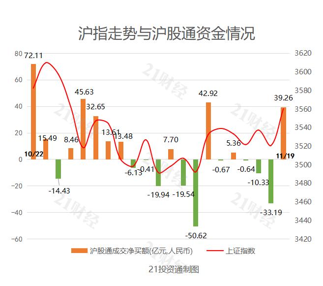 据21投资通(微信号ID:touzit21)智能监测,北向资金全天大幅净买入82.93亿元,其中,沪股通和深股通分别净买入39.26亿元和43.67亿元。