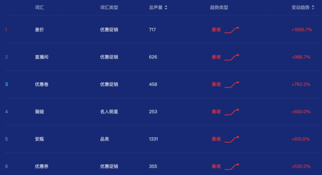 且一旦双方合作出现任何问题,最后大多数情况,都需要品牌“买单”。根据时趣洞察引擎对于「欧莱雅」品牌近5天社交媒体舆论分析可以看出,“差价”、“直播间”、“优惠券”、“薇娅”等相关词汇,均呈现出暴增的趋势,并出现了不少负面词云。