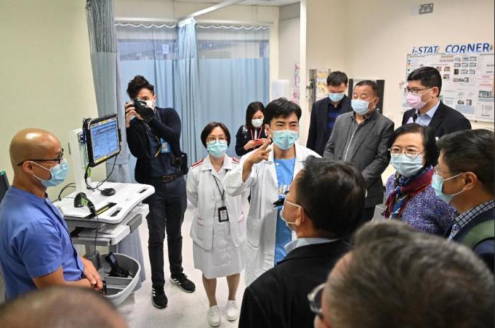 (香港有关医院管理人员在天水围医院向访港内地专家团介绍急诊室的分流和接诊安排情况。来源于香港政府新闻网)