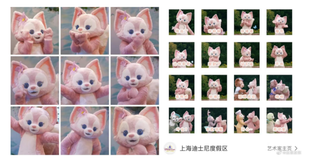 在各种社交平台上,儿儿的出镜主要就在乐园里逛街,和游客互动,表演跳舞、跺脚、拔剑、学松鼠等等,但之所以火爆出圈还在于短视频的二次创作,儿儿本身就有非常丰富的肢体动作,在和游客各种互动中,都会被人解读,可能是出于粉丝的解读,也可能是官方营销的解读。