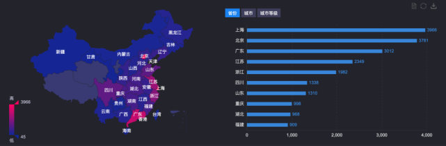 从地域维度来看,威震天的关注焦点以北京为主,其次是广东和上海。