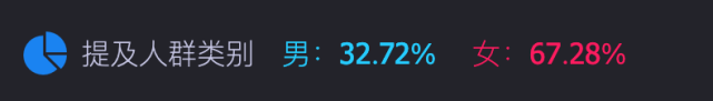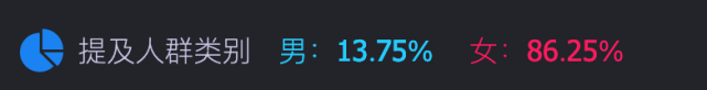 根据时趣洞察引擎数据显示,在关注儿儿的人群中,女性用户占比将近90%。要知道,儿儿是一只粉色狐狸,之前曾有一句大众耳熟能详的俗语就是“没有哪一个女生会拒绝粉色”,另外,粉色往往也是少女心的代表。