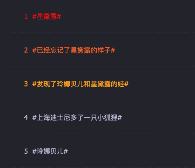 值得注意的是,从提及者的参与话题中来看,#已经忘记了星黛露的样子#,这一话题参与度较高,以及#上海迪士尼多了一只小狐狸#,#玲娜贝儿#。