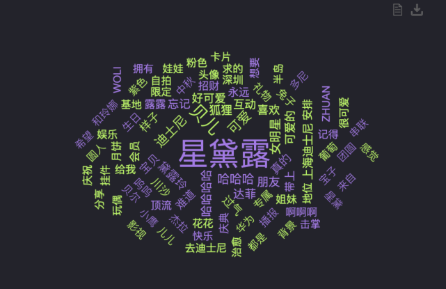 当网友们谈论到玲娜贝儿的时候,可以看到“可爱、好可爱、喜欢、宝贝、小可爱、呜呜、拥有、想要”等这种明显带有好感的关键词为主。