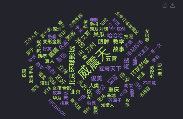 从关键词来看,当网友们谈及到威震天时,“北京环球影城、立体、俊美、五官、刀刻”等词为主,主要是场景关联词和外表形容词。