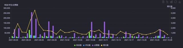 从情感值来看,奥特曼的情感偏向为9,处于正向区域。不过可以看到,奥特曼也存在负面话题的现象。