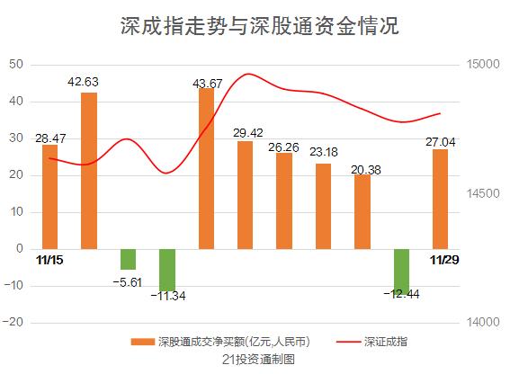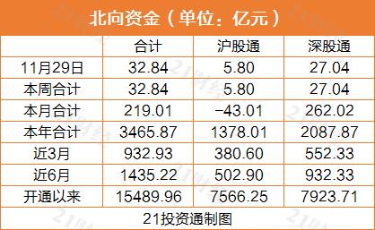 据21投资通(微信号ID:touzit21)智能监测,北向资金当日净买入32.84亿元。其中,沪股通净买入5.8亿元,深股通净买入27.04亿元。