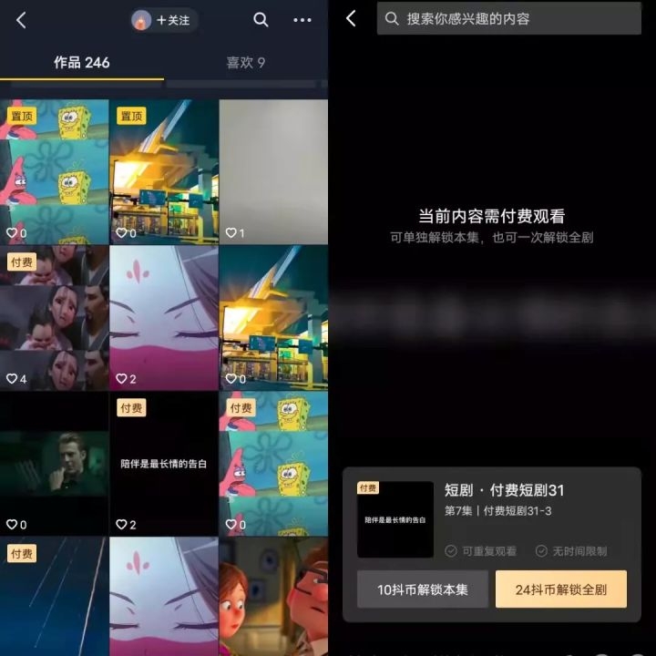11 月 29 日消息,抖音已开始测试短剧付费模式,而此前快手已经推出了该模式。根据测试的页面可以看出,抖音短剧的付费模式与付费小说类似,是按集数进行付费,每集最低 1 元起,支持一次性付费解锁全剧。付费后的短剧可重复观看,且无时间限制。此外报道还称,抖音为创作者开设了短剧专栏,提高了内容的曝光度。