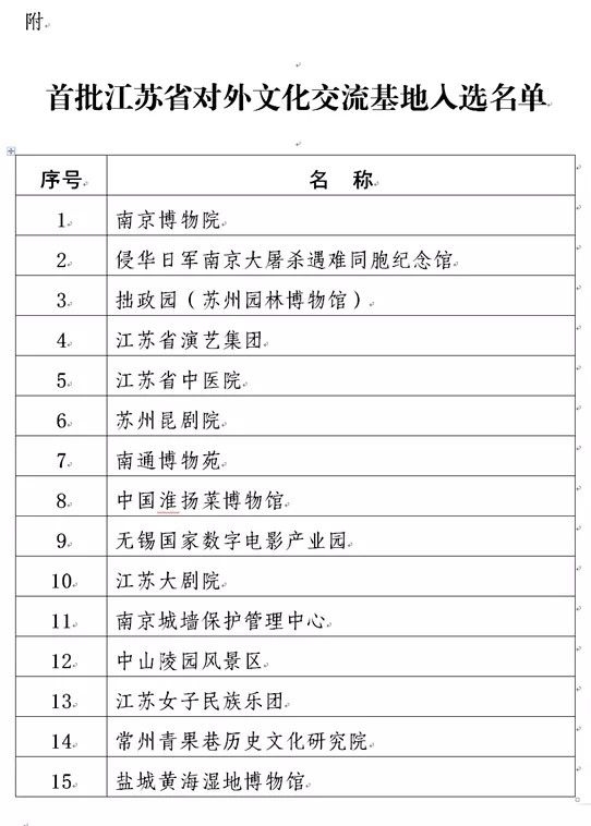 2、「文教」江苏 15 处对外文化交流基地名单出炉