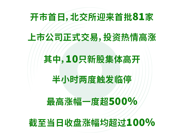 11月15日,北京证券交易所开市,为全国创新型中小企业提供了崭新的融资平台。证监会主席易会满在开市仪式致辞中,将北交所揭牌称为“积极探索具有中国特色资本市场普惠金融之路的新起点”。