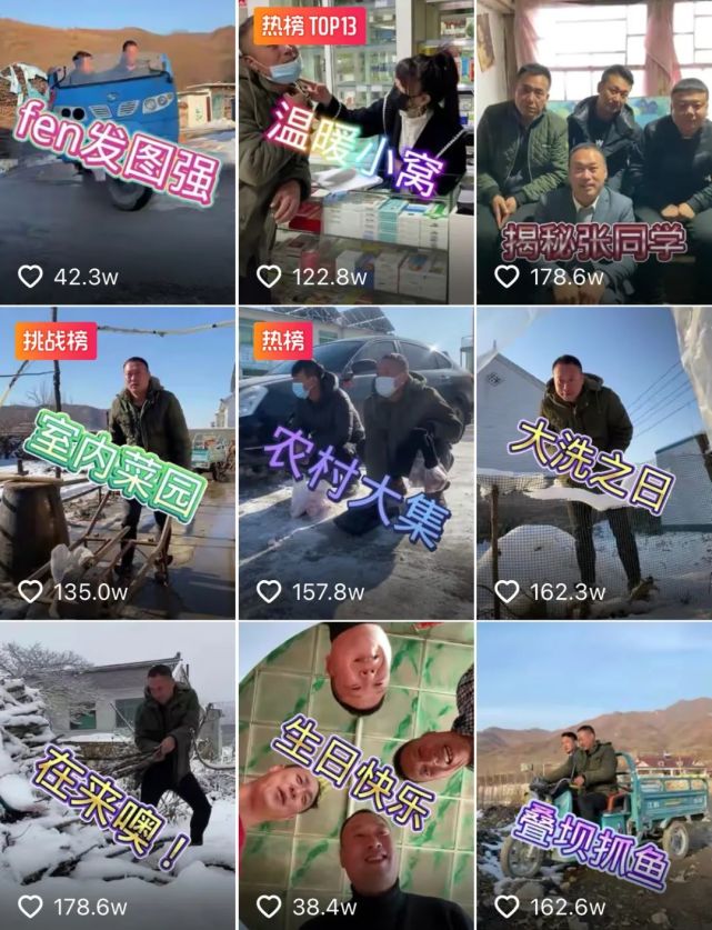 他的作品中主要以乡村生活为主,加上创意的拍摄手法和内容,巧妙的呈现系列情景故事,研究张同学的视频也成为了网友们的快乐源泉。