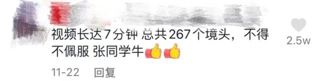 从视频中能看到,张同学有着专业的运镜、转场等拍摄技巧,剪辑画面非常流畅,远景和近景的切换把细节体现到极致。