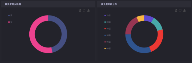 时趣洞察引擎数据显示,关于张同学的相关舆论受众群体,以85后-90后年龄层为主,而女性提及者比男性提及者相对多一点,但基本持平,从侧面也反映出了张同学的粉丝画像情况。