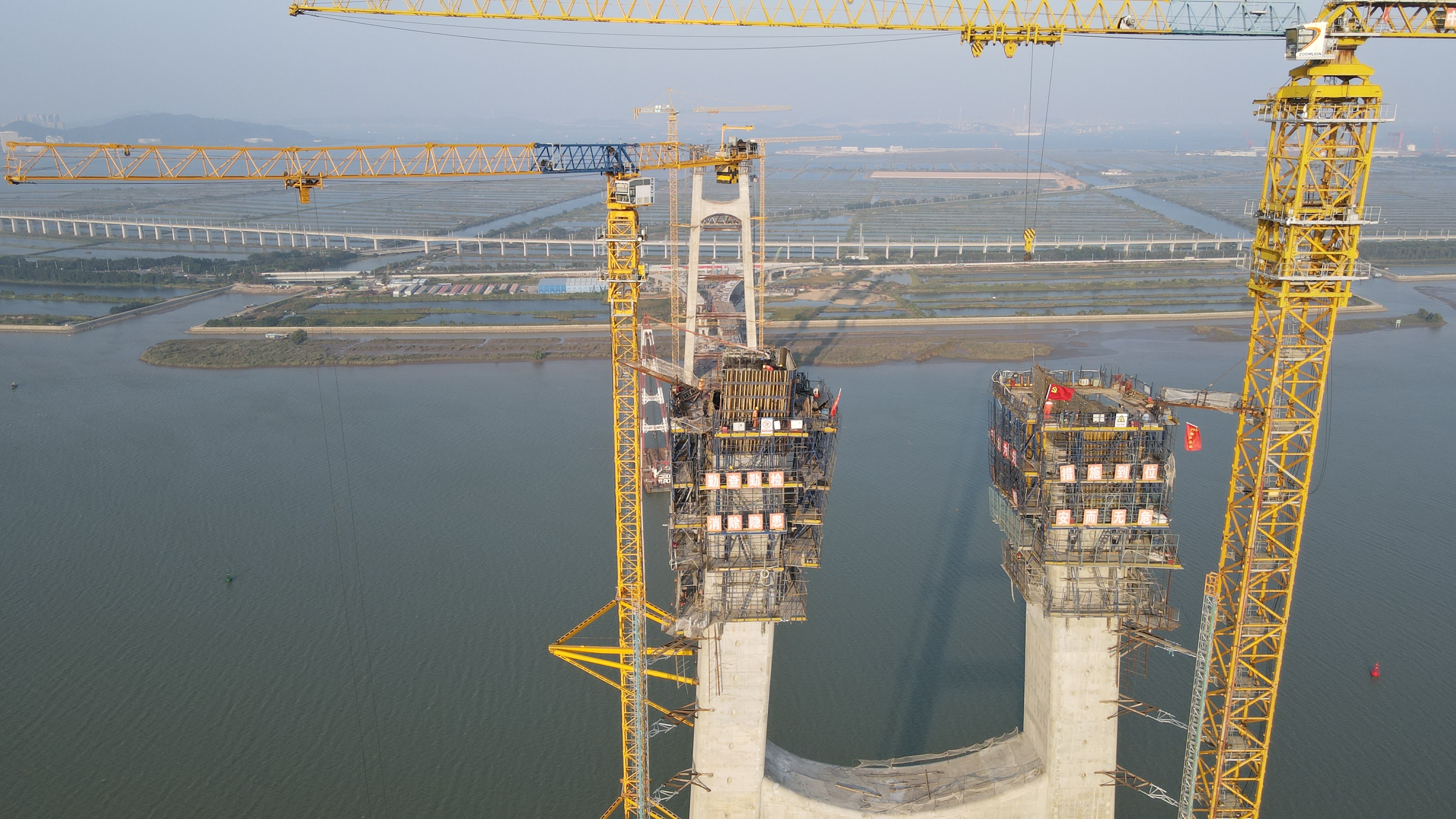 11月30日,随着最后一节段混凝土浇筑完成,标志着中铁建南沙投资万顷沙红莲大桥(简称“红莲大桥”)主塔顺利封顶,大桥将全面进入主桥钢箱梁安装阶段,为2022年建成通车创造了有利条件。