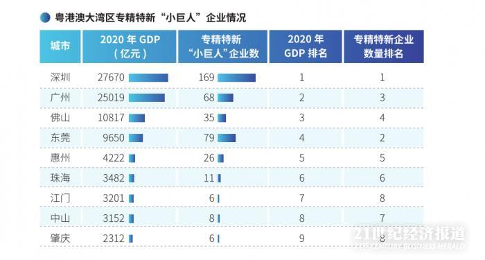21世纪经济报道记者于长洹 广州报道 专精特新“小巨人”企业是今年经济领域的高频热词。今年以来,南方财经全媒体集团广泛、深入、持续、系统地开展了以专精特新企业为代表的创新型高成长企业调研,并在中信银行广州分行支持下,将研究发现的内容成果归纳形成了《粤港澳大湾区专精特新企业年度调研报告》(下称《报告》)。12月3日,该报告在2021南方财经国际论坛专题论坛之一的2021年粤港澳大湾区新经济发展论坛上正式发布。