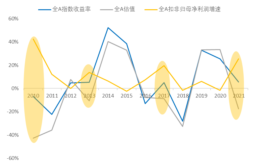 2022年宏观压力下A股业绩增速将出现回落,市场驱动力从业绩转向估值。