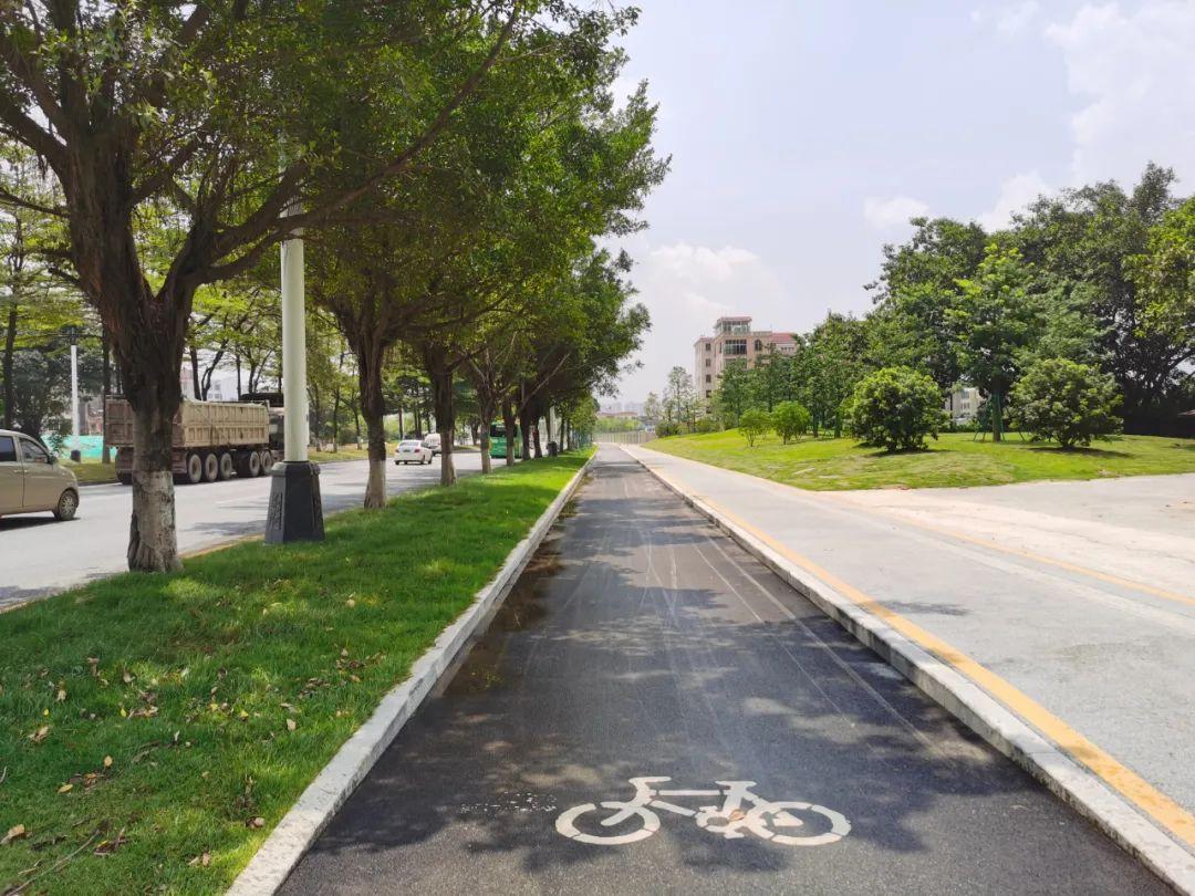 专道专行,有效解决了之前人车混行,磕碰频发、人行道上骑行颠簸不适等问题。目前,在九龙大道何棠下段、九佛墟段改造下沉式非机动车道2100m。