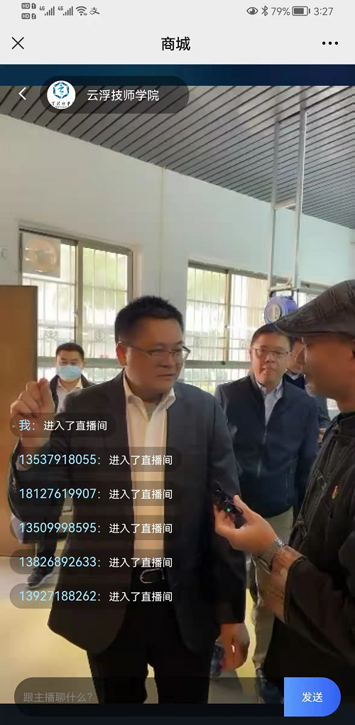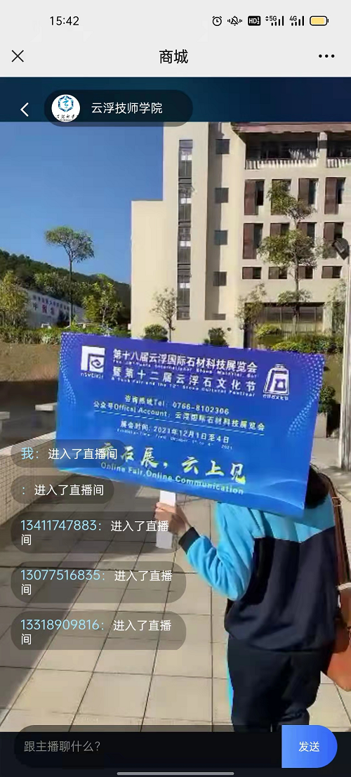 在云浮技师学院直播间,徐树新副市长在学院领导的陪同下参观了直播现场,并表示“今年是极不平凡的一年,面对新冠肺炎疫情的持续冲击和严峻的经济环境,一批批云石继承人秉承在逆境下化被动为主动、化压力为动力、化危机为契机的“石头人”精神,通过一件件石艺作品传递独特的云石艺术,向世界展示中国石都云浮的魅力。希望今后,我们云浮石材工艺行业继续秉持科学规范、务实求真、技术创新和团结奋进的宗旨,进一步推动云浮石材产业的高质量发展,进一步擦亮云浮石材这块“老字号”品牌!”