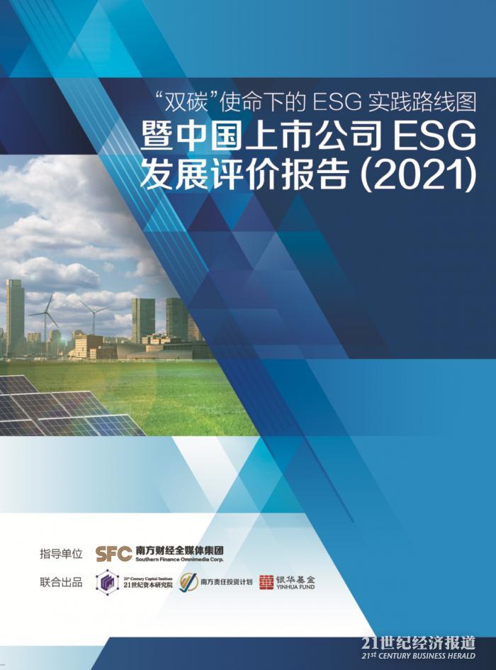 在当天下午举行的平行主题论坛二:ESG论坛(2021)——“创新、绿色与上市公司高质量发展”上,21世纪资本研究院、南方责任投资计划研究团队、银华基金联合发布了《“双碳”使命下的ESG实践路线图暨中国上市公司ESG发展评价报告(2021)》(以下简称“报告”)。