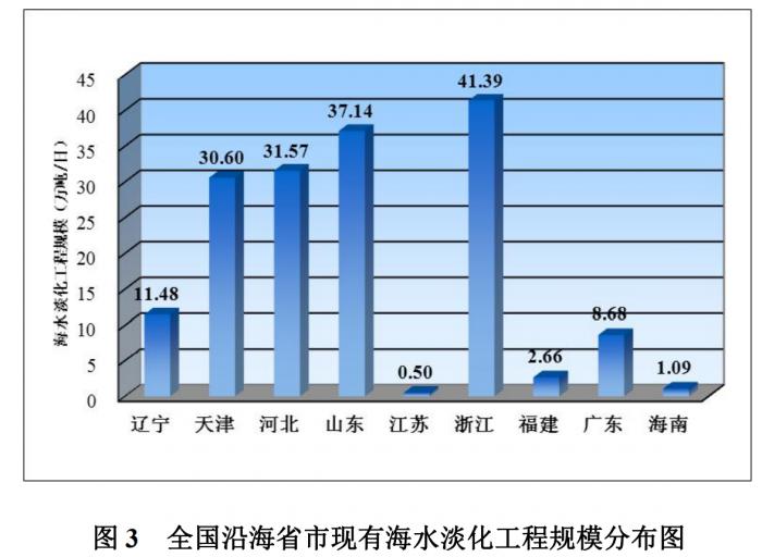 截至2020年,全国海水淡化工程分布在沿海9省市。