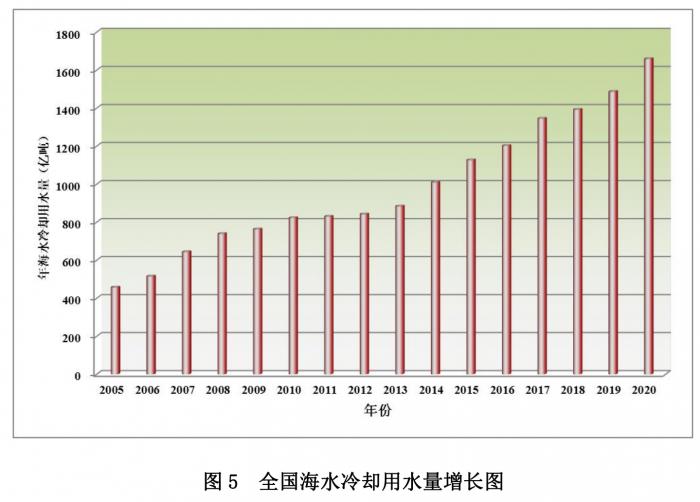 《报告》明确,2020年沿海核电、火电、钢铁、石化等行业海水冷却用水量稳步增长。据测算,2020 年全国海水冷却用水量 1698.14 亿吨,比 2019 年增加了 212.01 亿吨,增幅近14.27%。
