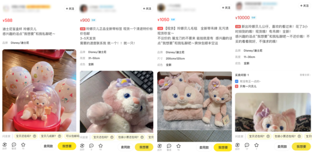闲鱼上,有卖家将抽取到的原价为 108 元的玲娜贝儿饮料杯(不含内容饮料,仅为杯子),标价为 588 元;还有问将原价 219 元的 S 码玲娜贝儿公仔标价为 900 元,但“想要”的潜力买家已经有 21 位。