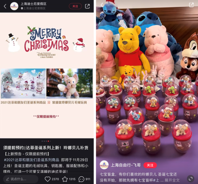 左为抖音博主@大利游记,右为@迪士尼老玩家