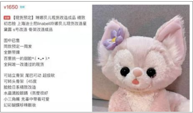 曾有闲鱼的一位手作娘推出玲娜贝儿公仔的改造服务,可以根据买家的需求将公仔的脸改成更可爱的样子,服务费高达 1650 元。